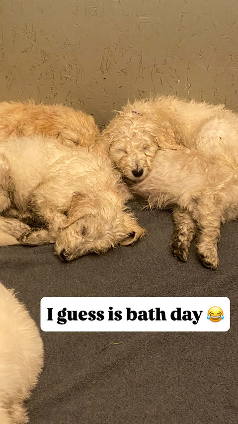 The puppies will have their first round of shots and we will start teaching them tricks, crate training and potty training them before they are ready to go to your home. We will be providing you with a puppy package with everything you need for an easy transition to bring a puppy into your home. This litter will be ready to go to their new home the first week of June- perfect for a kid's summer break!