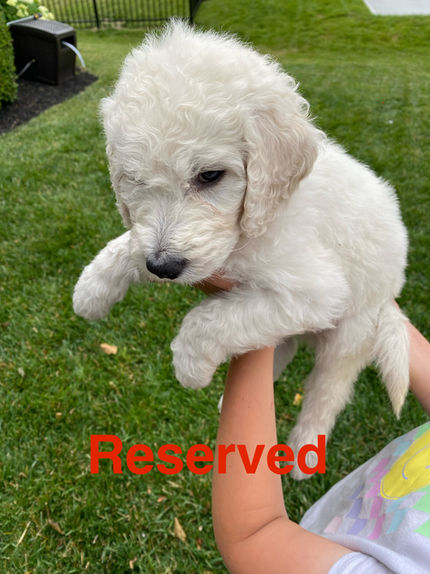 At Braun Goldendoodles, we raise exceptional animals in a loving and caring environment. Dedicated to following a responsible breeding program, our focus is on keeping our animals healthy and happy for when they find their new homes. Our family has been raising golden retrievers and now goldendoodles for generations. Our current litter was born April 12, 2024, and has six boys and six girls. Our puppies are raised in our home in a whelping box and played with and handled daily by our four daughters. These F1B Standard goldendoodles will be white to light tan in color with tighter curls for less shedding and a hypoallergenic coat and weigh 30-50lbs.